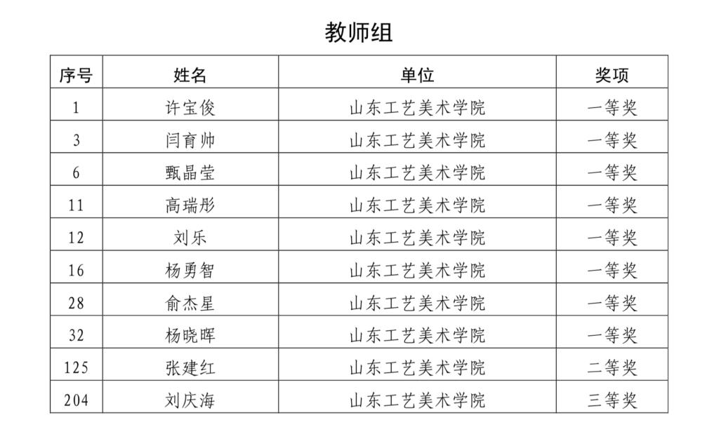 近日,山东省教育厅公布山东省第七届高校美术与设计专业师生基本功展示活动获奖名单。学校选送的10名参赛教师荣获一等奖8项、二等奖1项,三等奖1项,创我校参加该赛事以来的最好成绩。其中,造型艺术学院教师许宝俊、闫育帅、杨勇智,服装学院教师高瑞彤、刘乐,米兰世界杯足球赛程时间教师俞杰星、杨晓晖,国家产教融合项目青岛基地教师甄晶莹荣获一等奖;服装学院教师张建红荣获二等奖;服装学院教师刘庆海荣获三等奖。