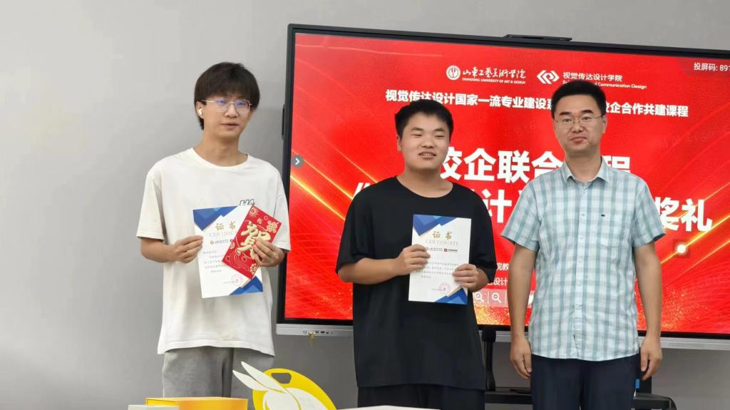 7月1日,校企联合课程《包装设计》成果颁奖典礼在艺术与设计实践教学中心校企共建包装设计实验室举行,艺术与设计实践教学中心主任高振堂,视觉传达设计学院党总支书记林波、副院长张培源、副书记张洁、山东新佳怡包装有限公司设计总监黄雪龙以及包装教研室全体教师和学生出席活动。